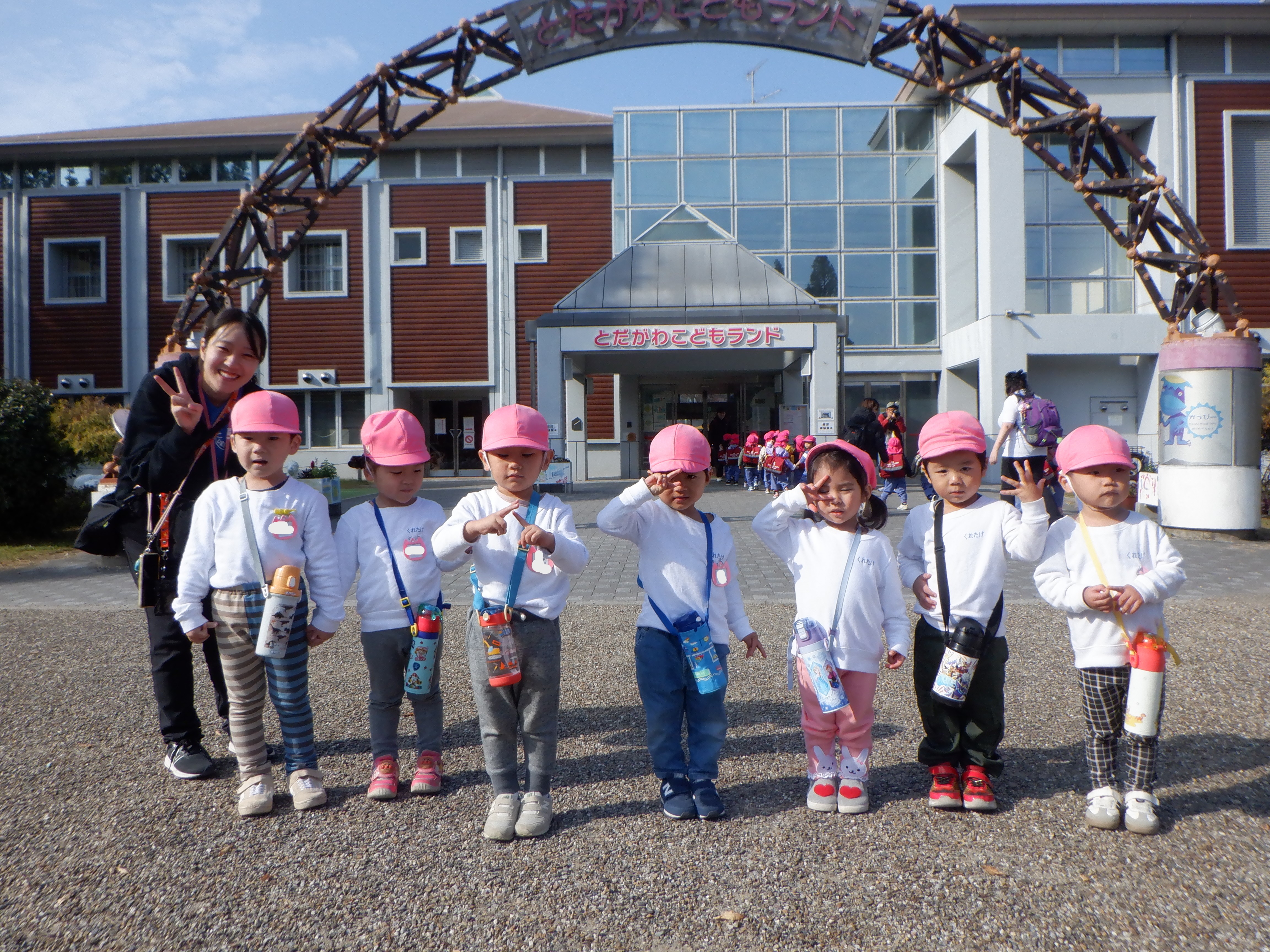 もも組さんだけで、とだがわ子どもランドに遠足に行ってきました!前日までとても寒く、遠足の日は大丈夫かなぁと心配していましたが、当日はなんと快晴☀そのうえとても暖かく遠足日和でした!