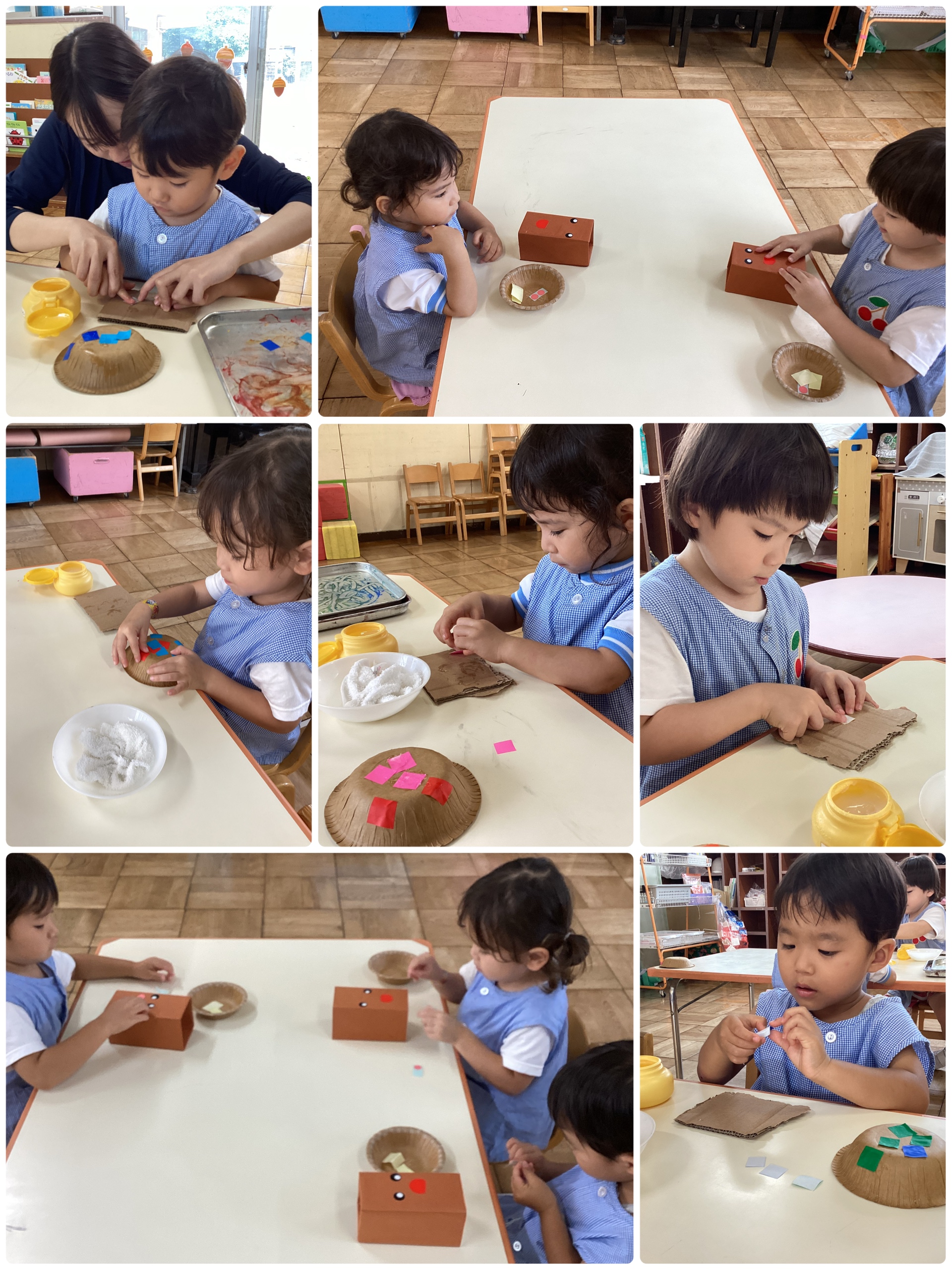 どんぐりの帽子は、初めてのりを使って貼りました!