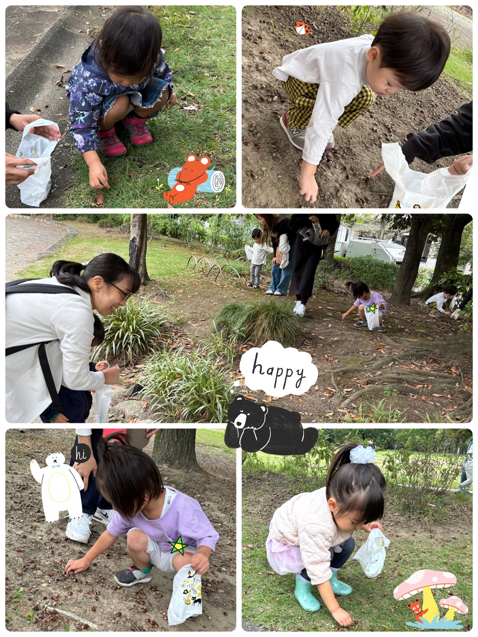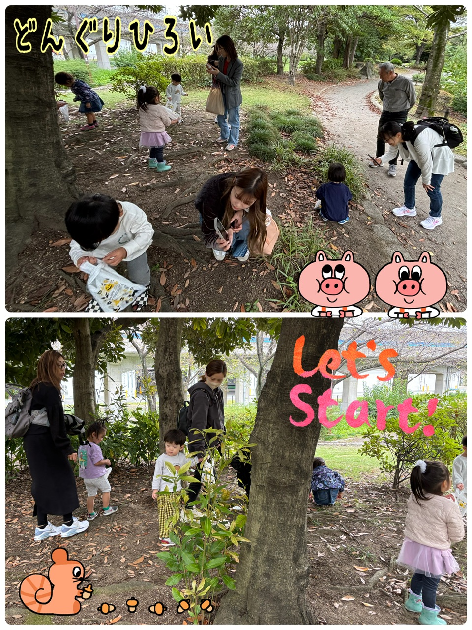 ちびっこさん達、夢中でどんぐり拾いをしていましたね♪( ´▽`)