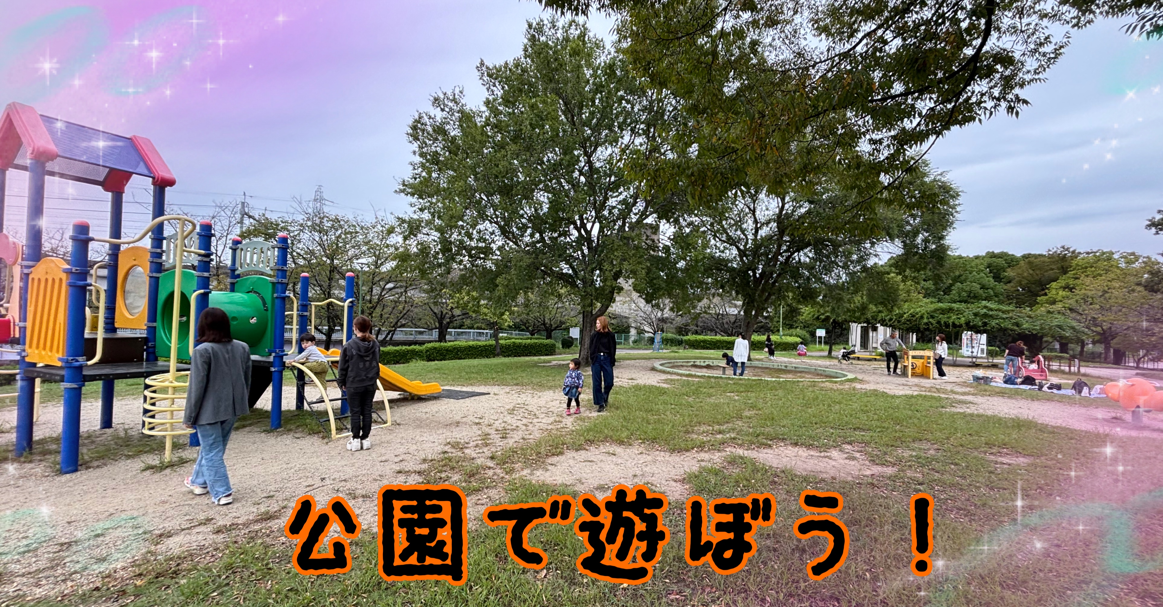 バスから降りたら、ママと手をつないで公園内をお散歩〜♪