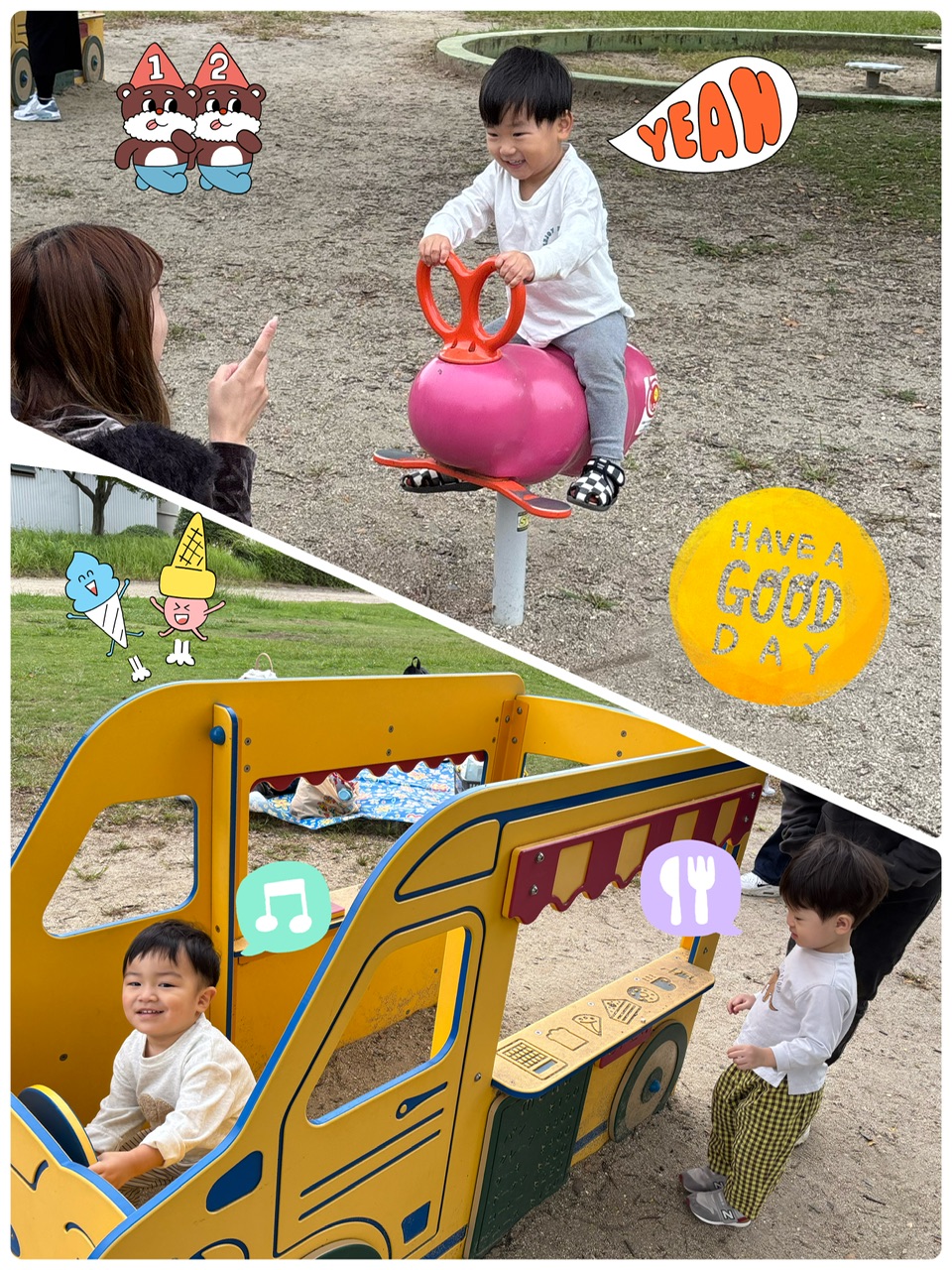 幼稚園バスにも乗れて、どんぐりもたくさん拾って、公園でたくさん遊んで、大大大満足な遠足になりましたね♪(๑ᴖ◡ᴖ๑)♪