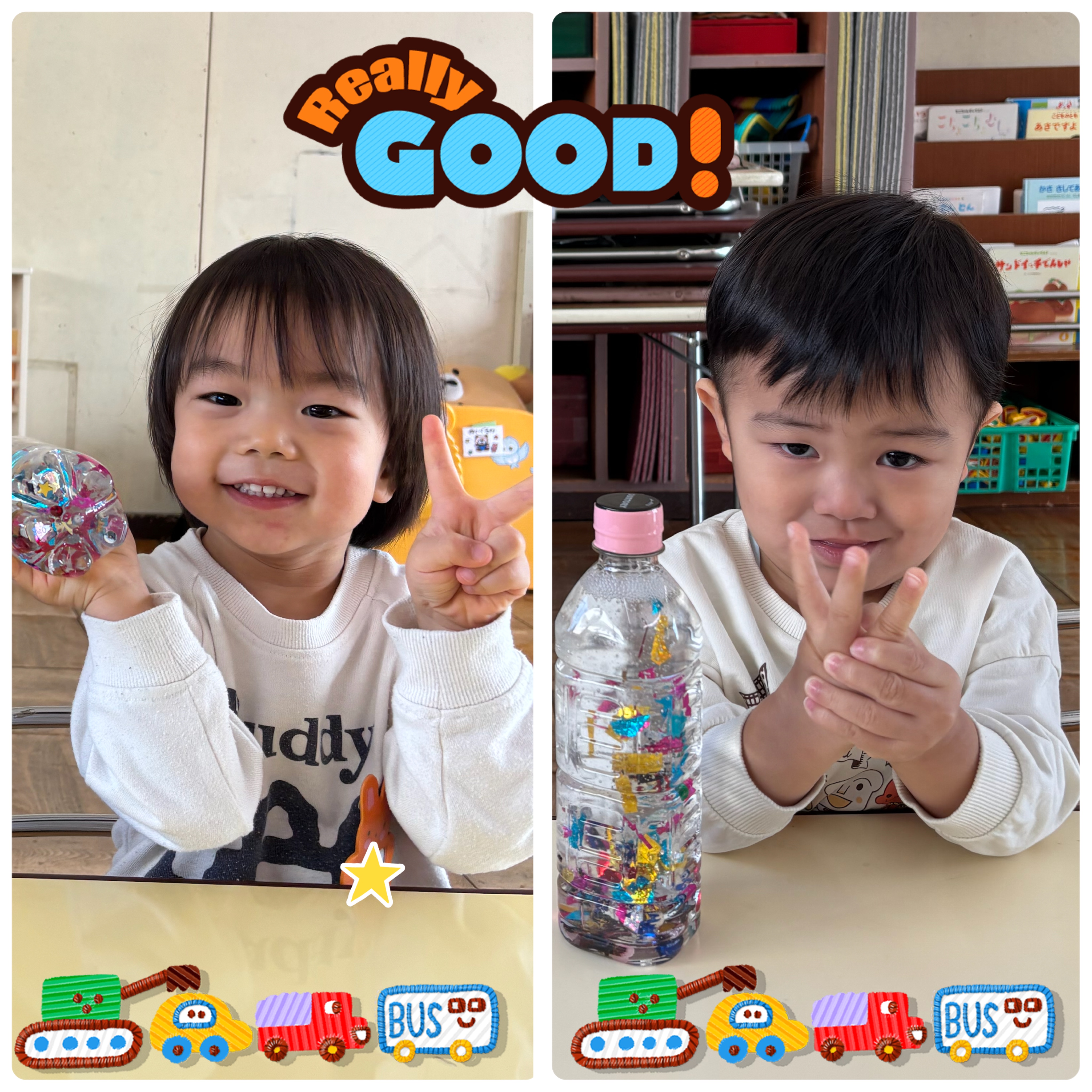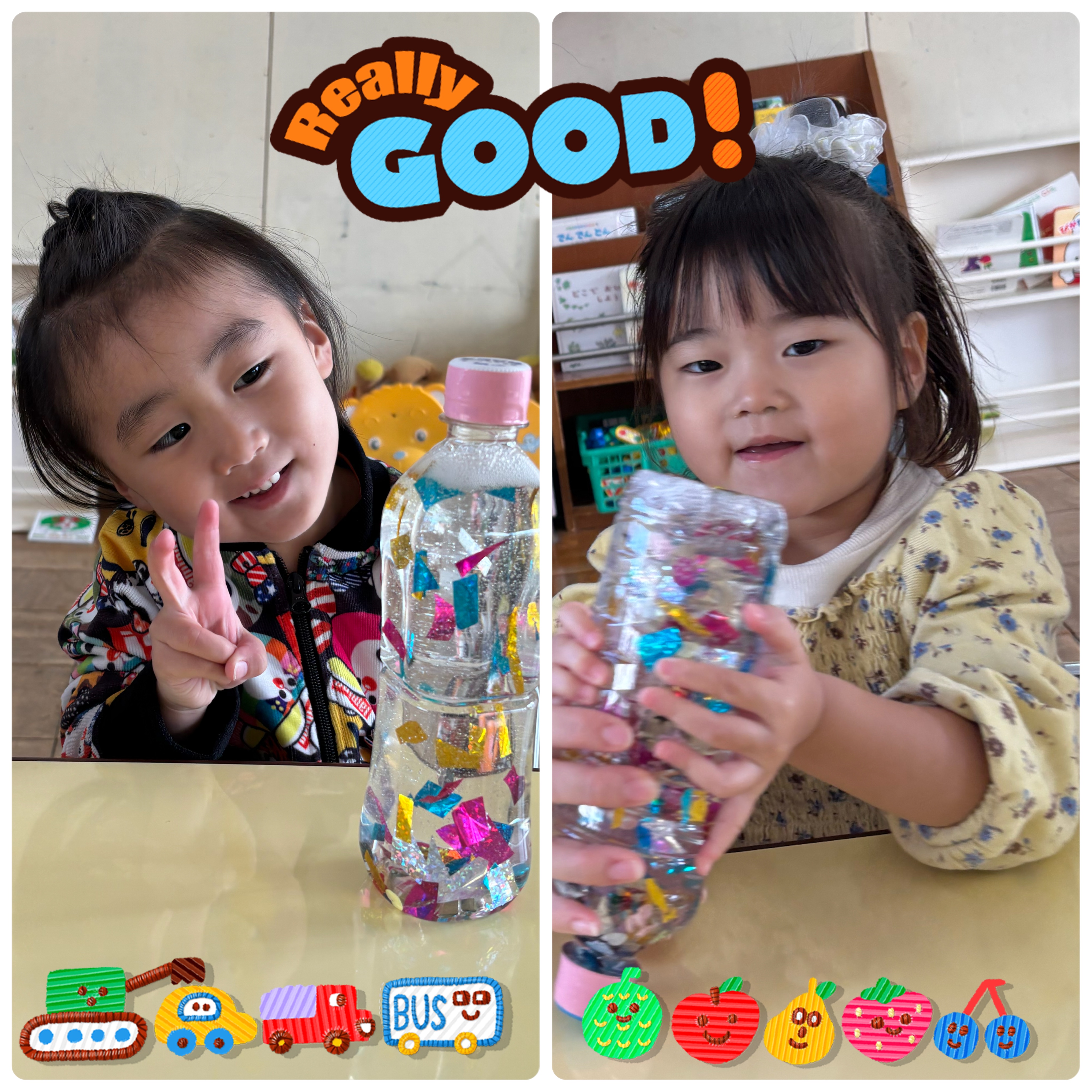 素敵なキラキラペットボトルが完成して、満足そうなちびっこさん達でした☆