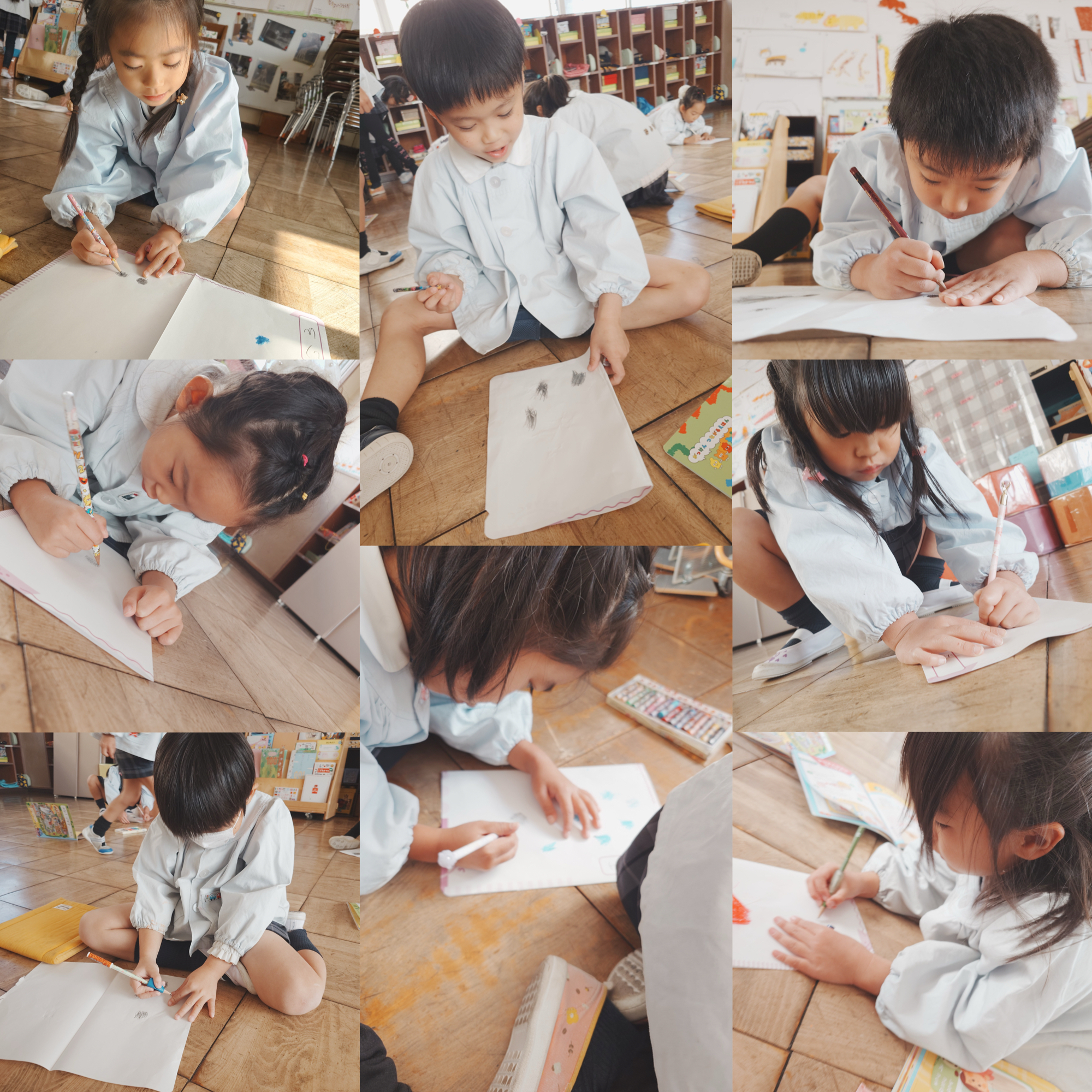 その後は土の中のシール貼りやこすり出しを楽しみました。