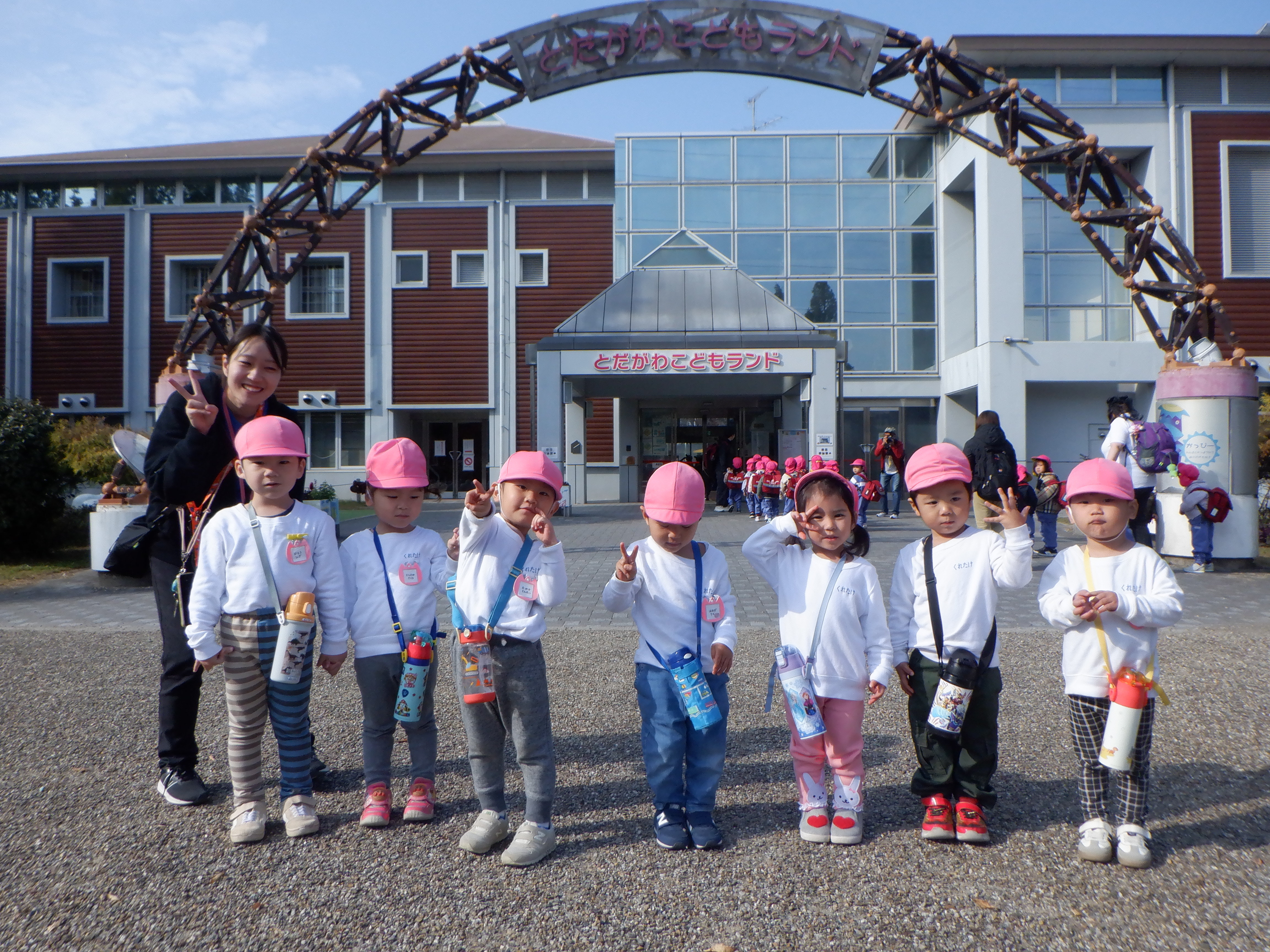 もも組さんだけで、とだがわ子どもランドに遠足に行ってきました!前日までとても寒く、遠足の日は大丈夫かなぁと心配していましたが、当日はなんと快晴☀そのうえとても暖かく遠足日和でした!