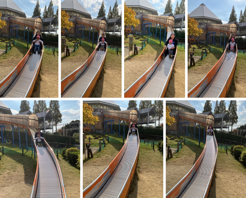 食後にも時間があったので遊びました。ローラー滑り台は来たときは大行列でしたが、お昼時はガラガラ。運よくみんな滑ることができました!