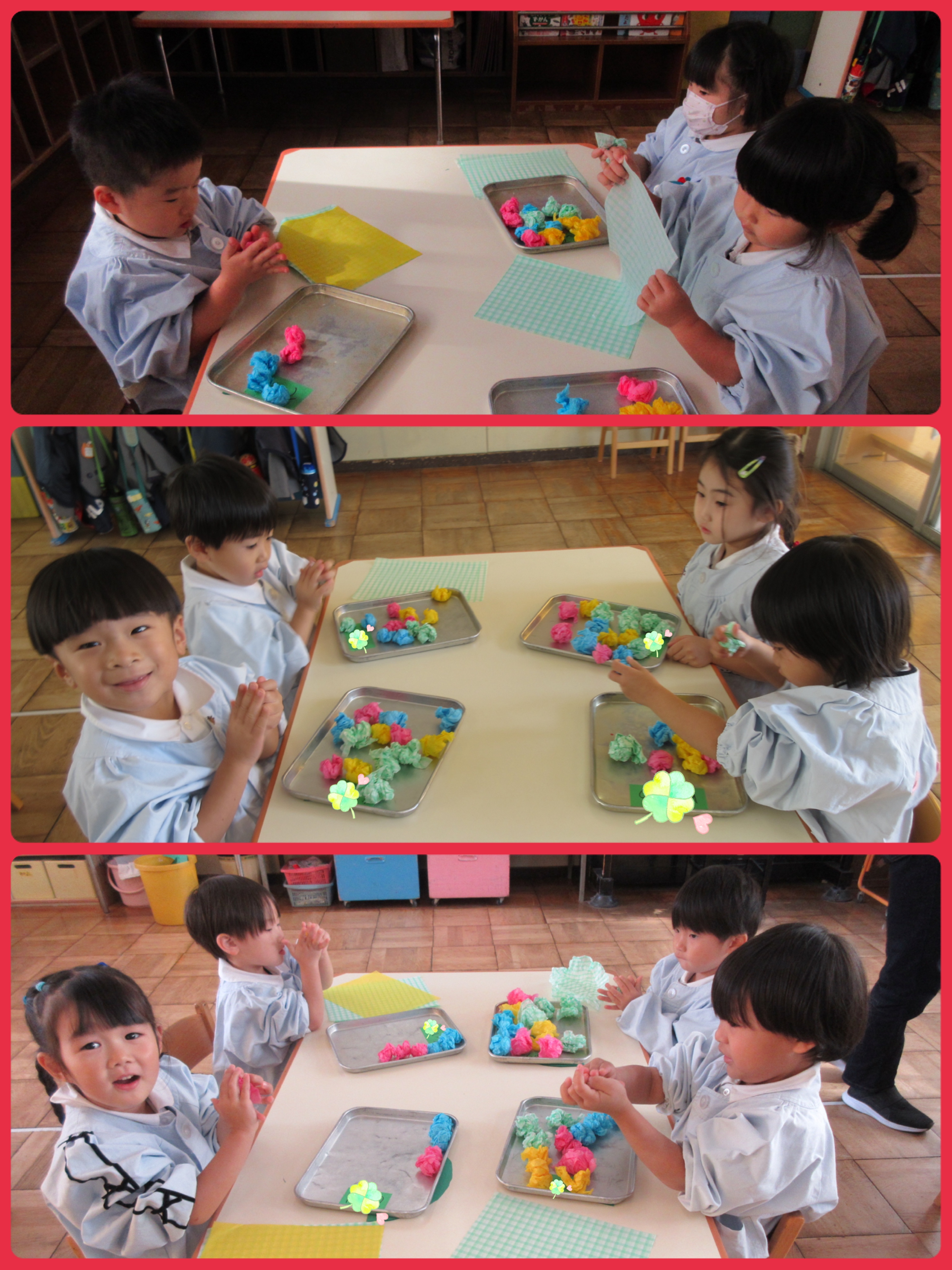 「材料を大切に使うと、いろんな物が作れるんだよ〜」と物の大切さを伝えながら作りました(^^)