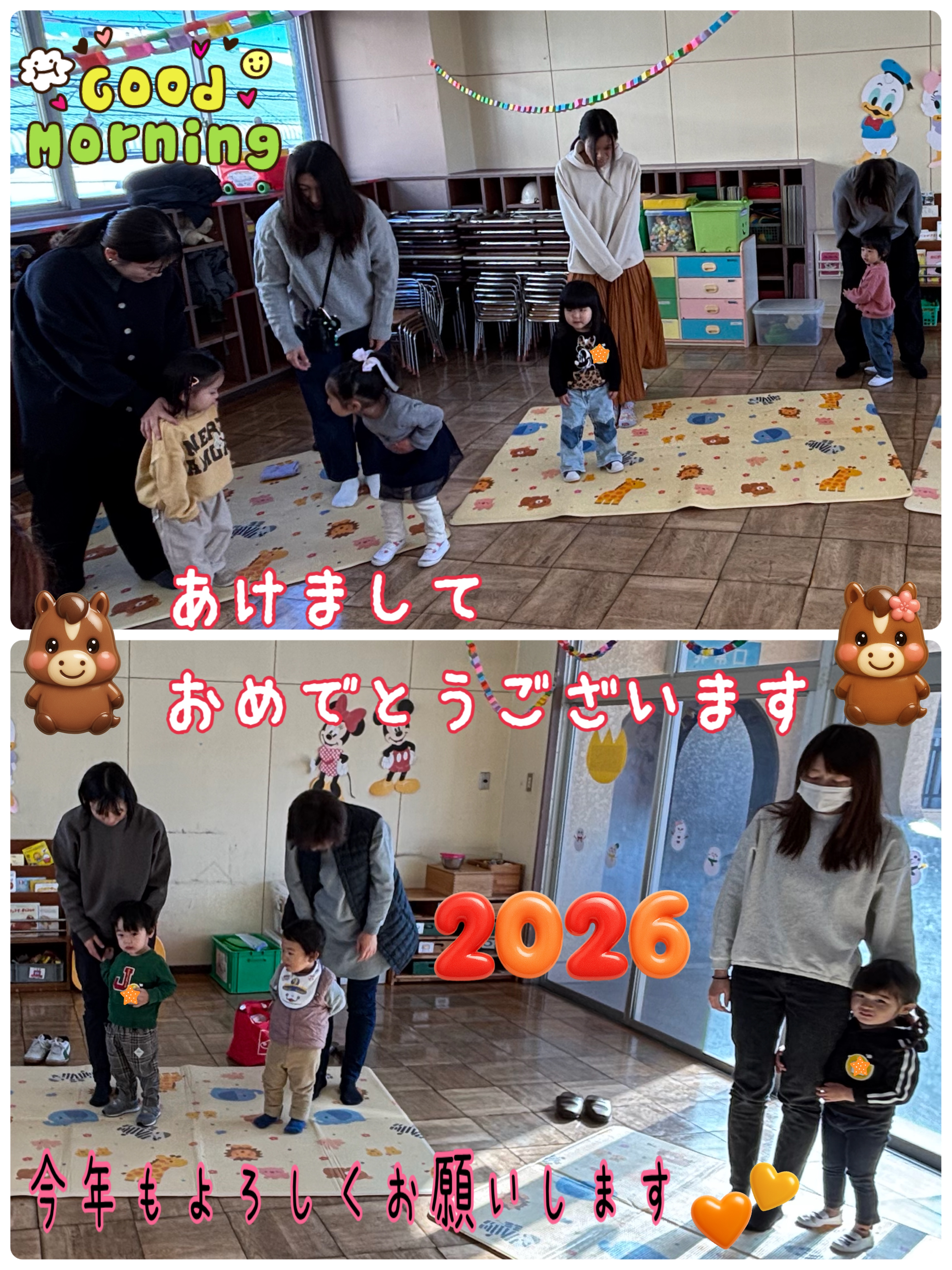 いつも通り朝の挨拶をした後、新年のご挨拶も上手にできましたね!