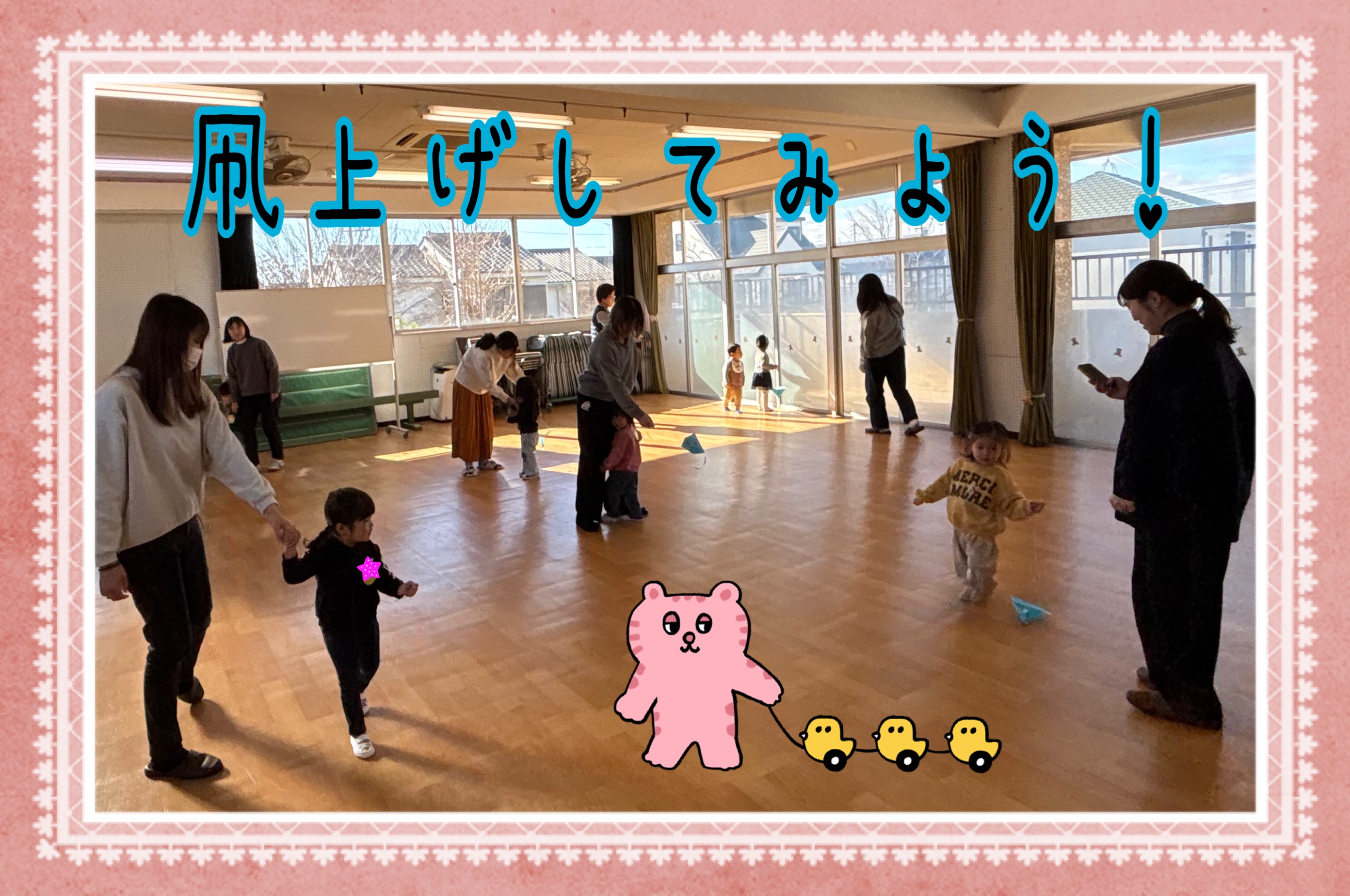 早速、広ーいリズム室で凧上げしてみましょ〜╰(*´︶`*)╯
