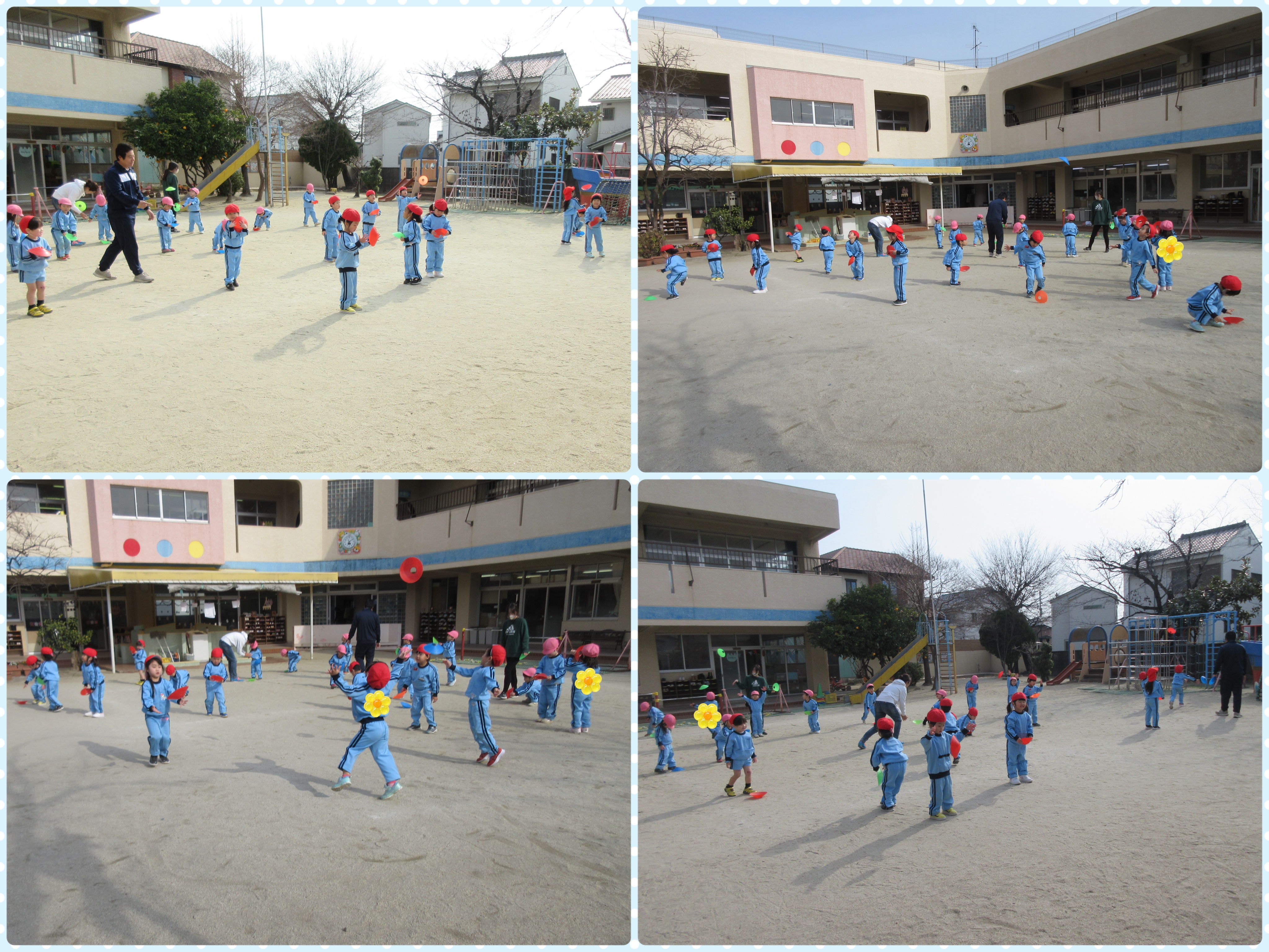 新学期早々は生活リズムが戻らず眠そうな顔を見せる子や、ママと離れて少し寂しそうな顔を見せる子もいましたが、今ではすっかり園生活のリズムを取り戻し、寒さを吹き飛ばしながら元気いっぱい遊んでいます(^ ^)