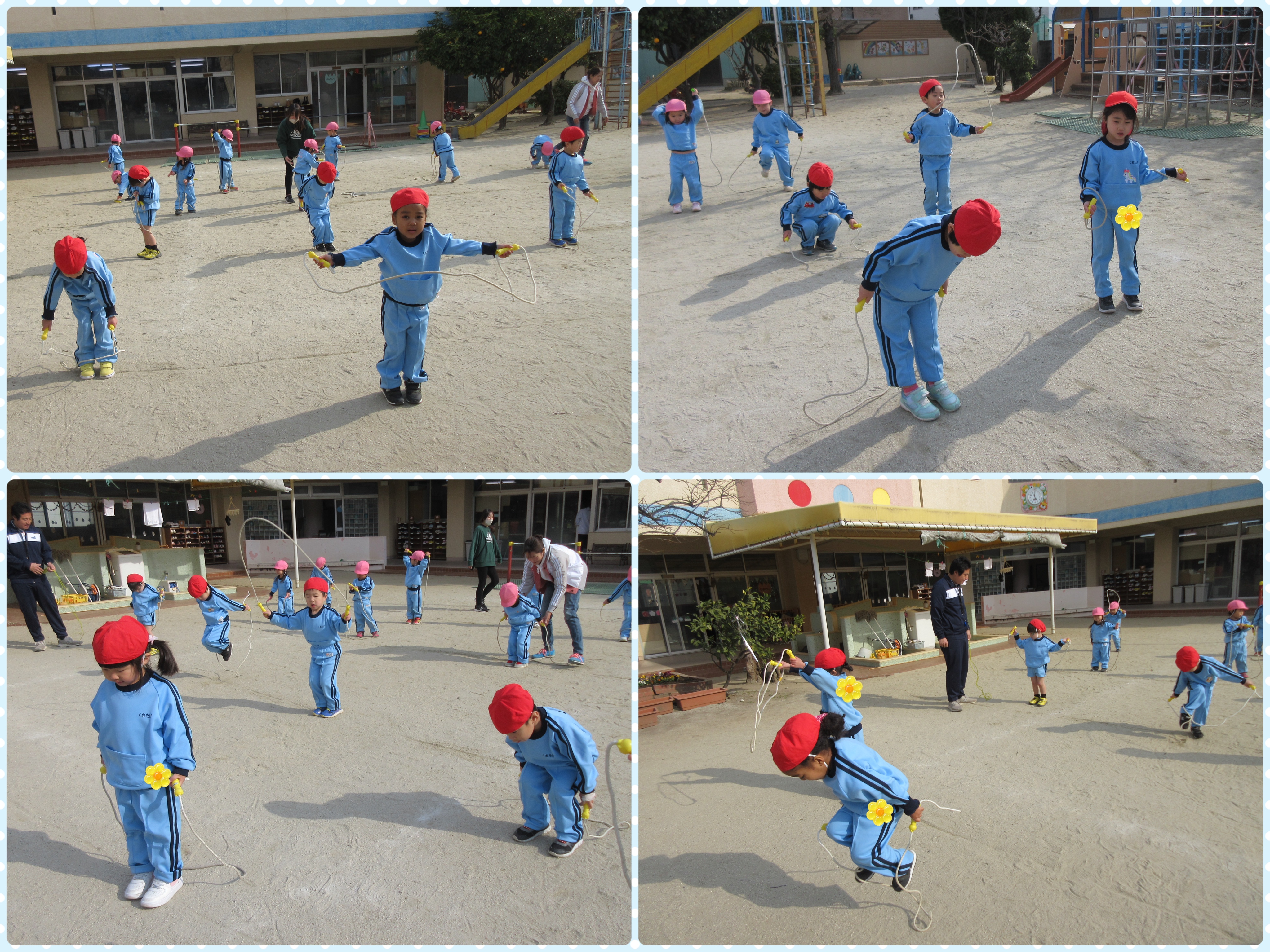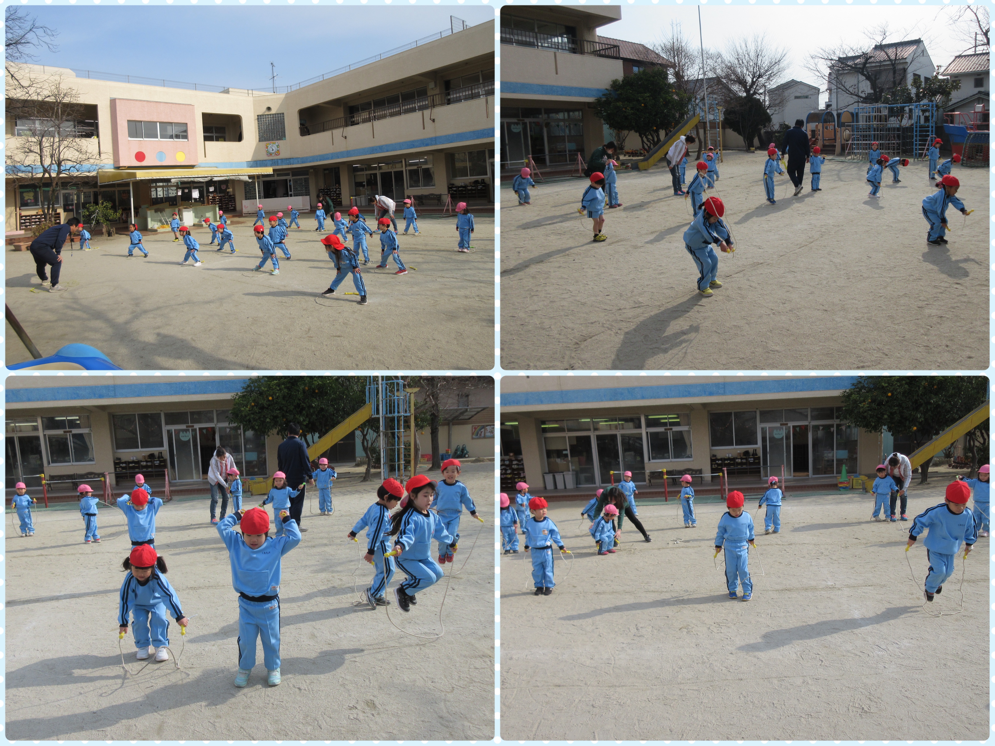 先週の体操の時間はとっても寒い日でしたが、園庭でなわとびをしました☆