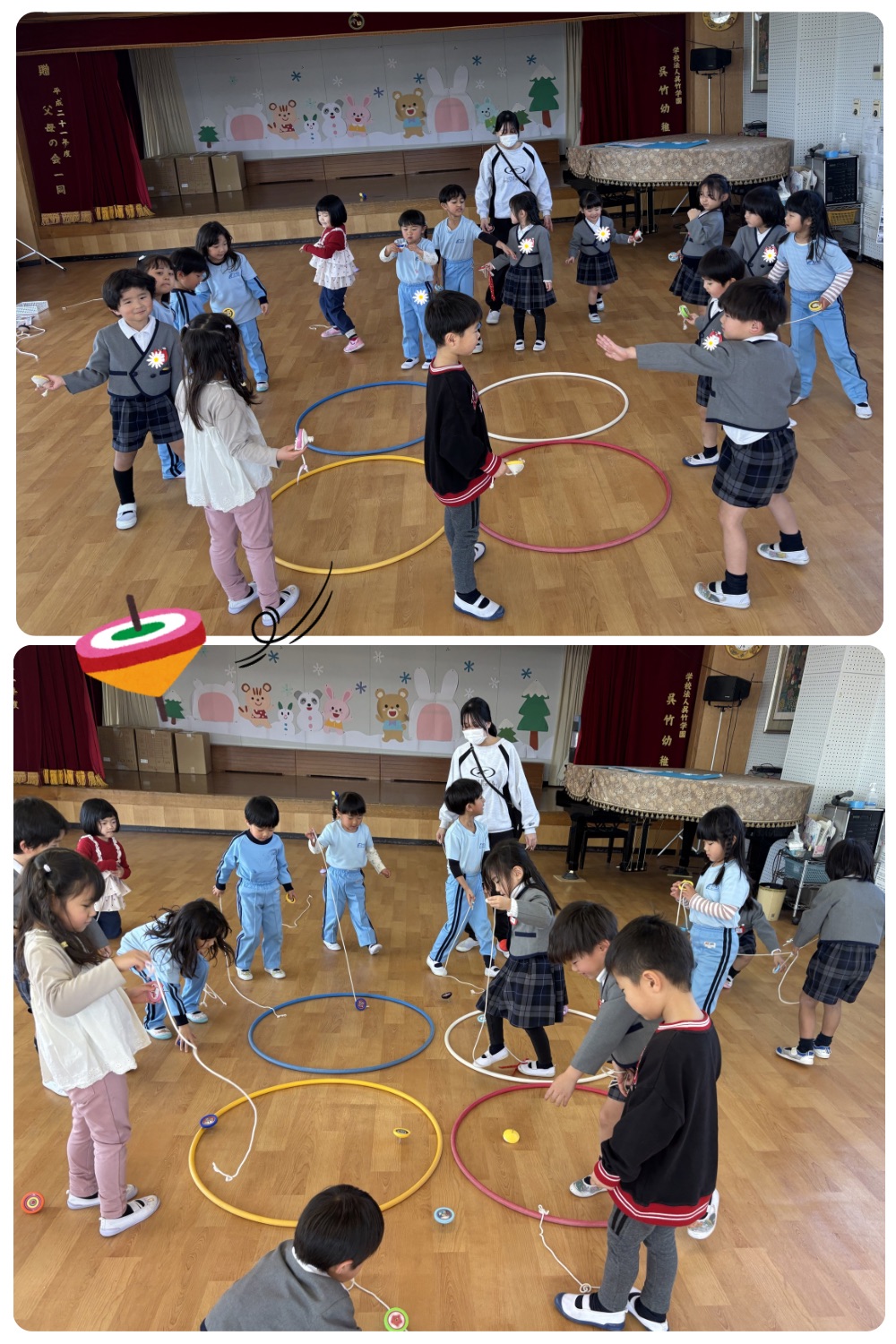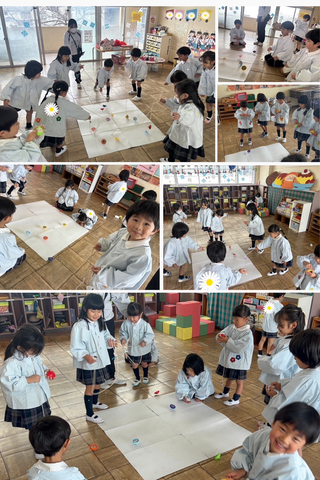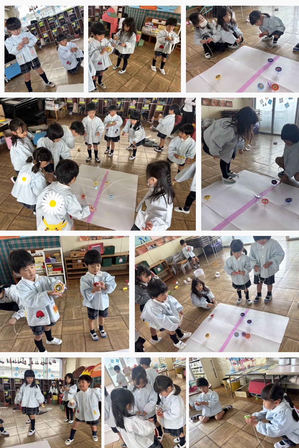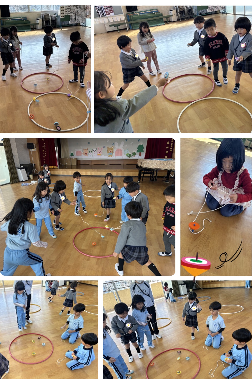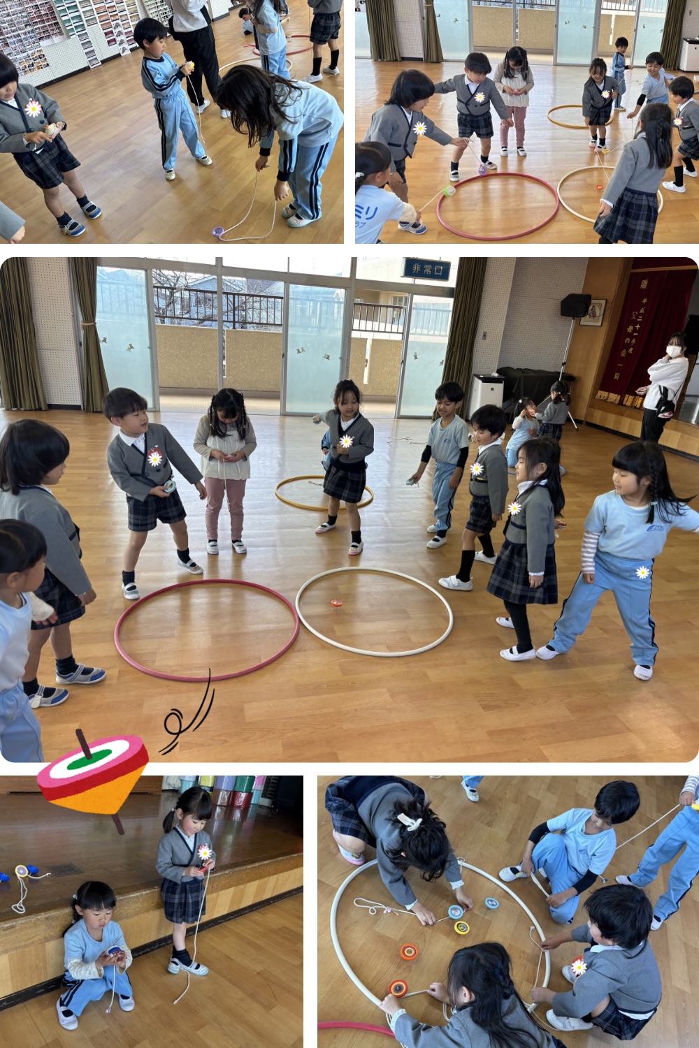 はじめは紐の巻き方もコマの持ち方も知らなかった子どもたちですが、今では給食を食べた後の遊びが必ず毎日こま遊びと言うくらいこまがだいすきな子どもたちです🥰♡♡