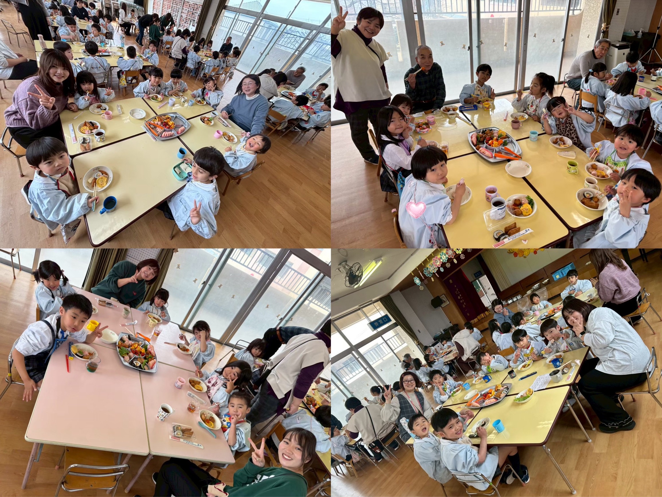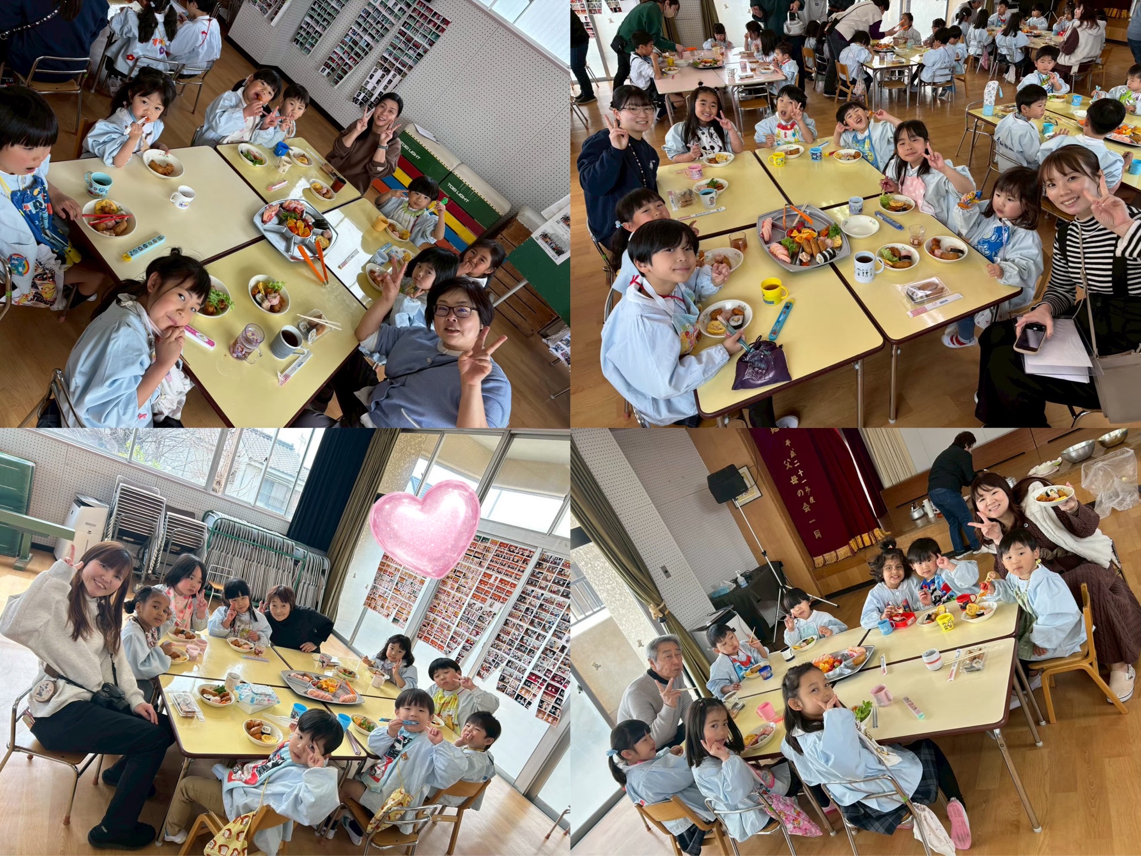 お昼は、みんな一緒に食べました。いつとも違うお給食にこどもたちはとっても嬉しそうにパクパクと食べていました♡