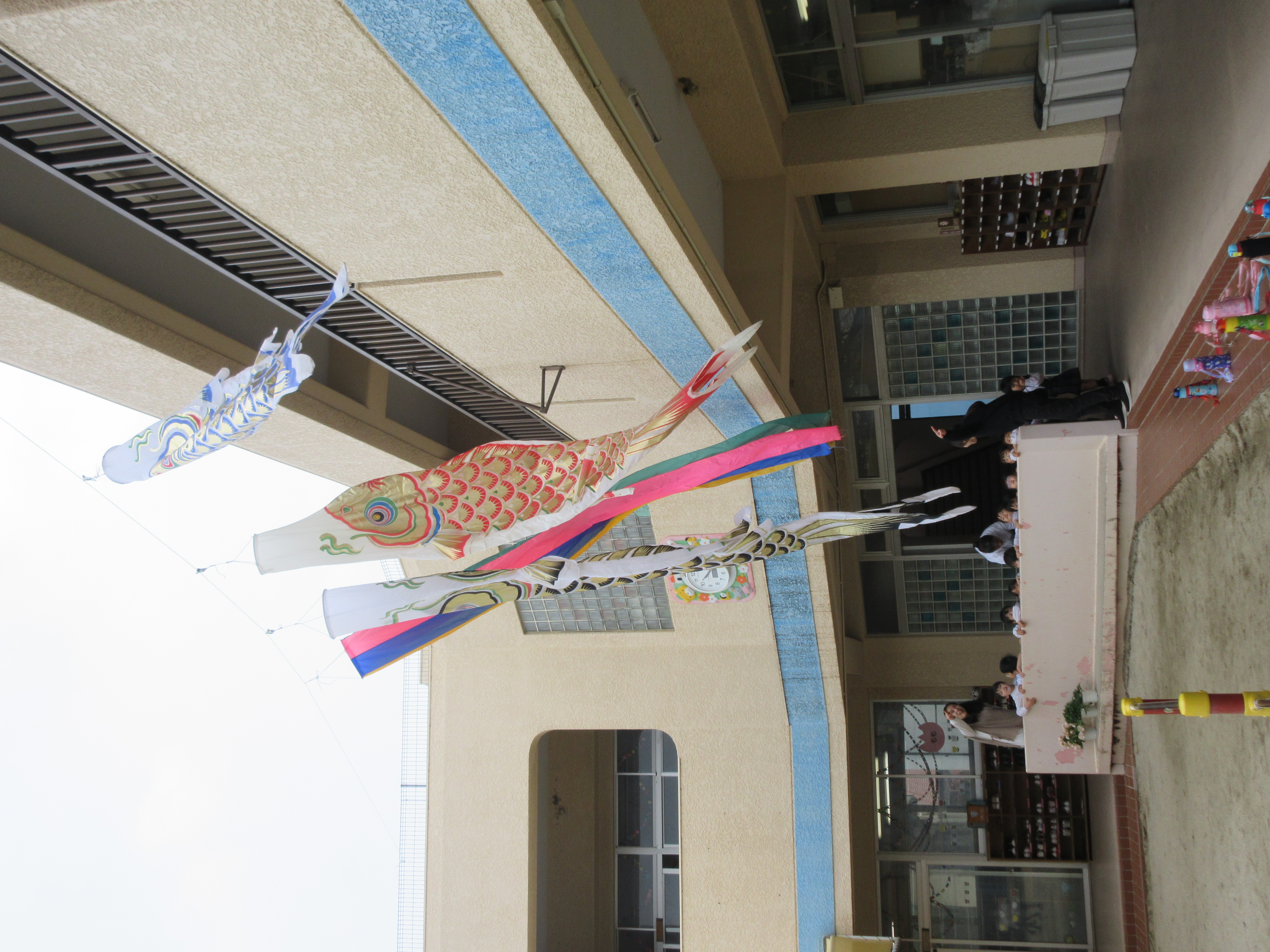 幼稚園に飾ってある鯉のぼりを見にいきました♪