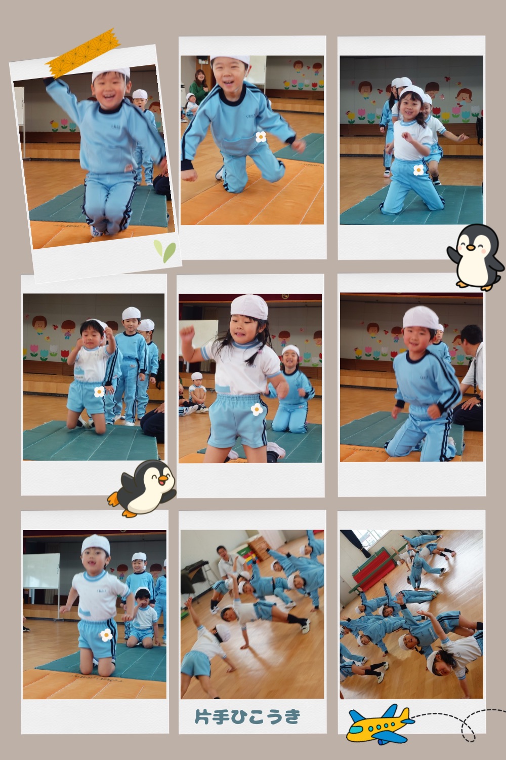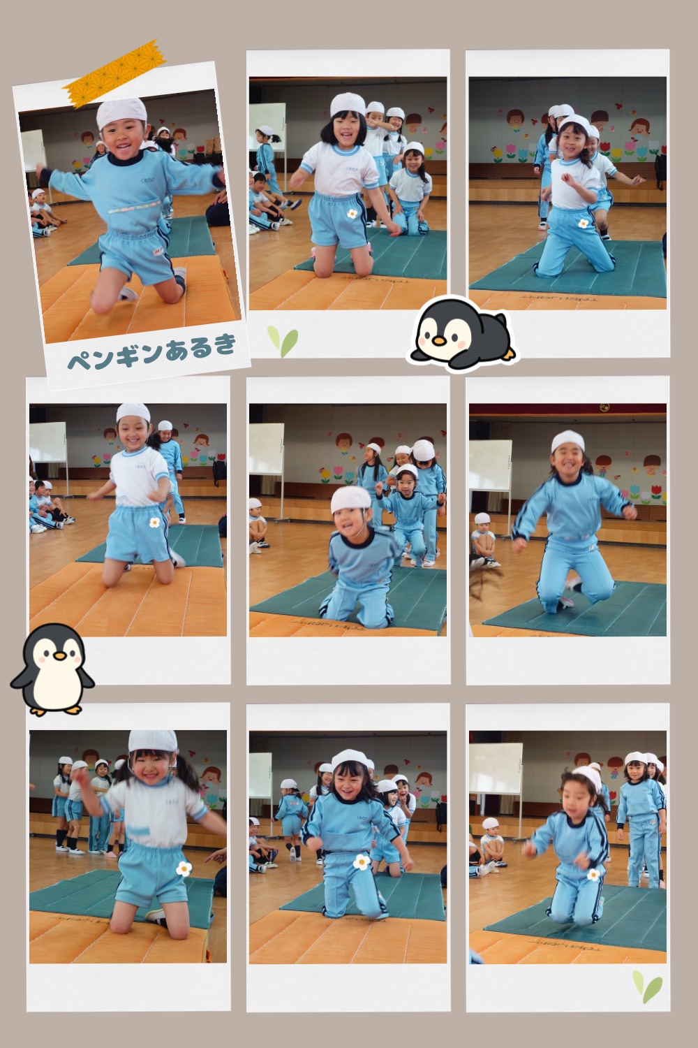 マットの上ではおいもさんになってマットから落ちないように転がったり、ペンギンに変身して走ったりジャンプをしました!😆
