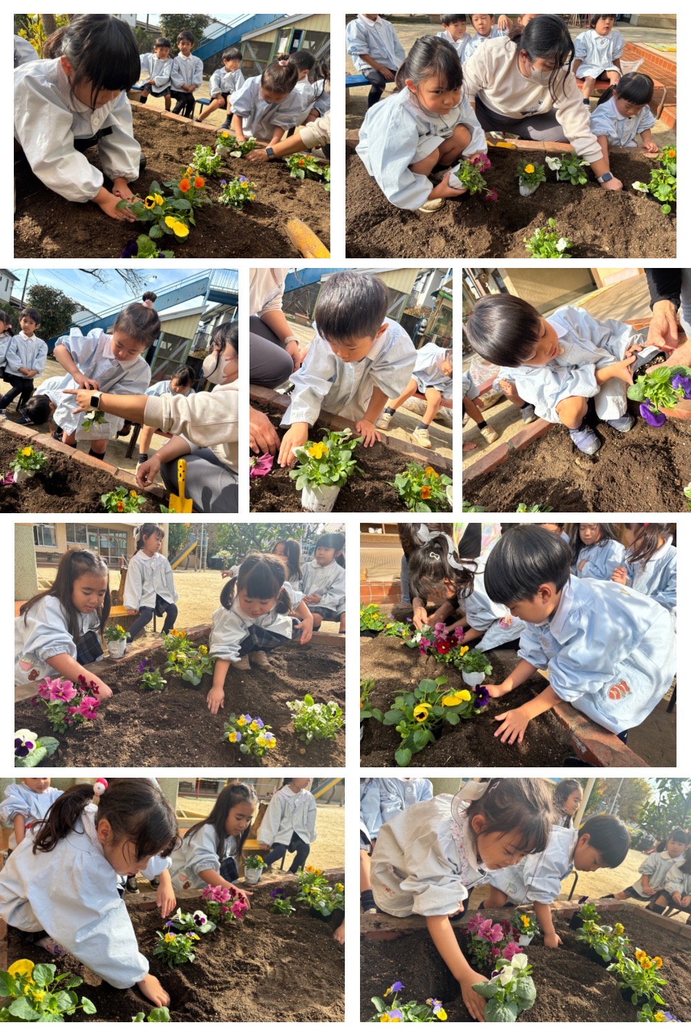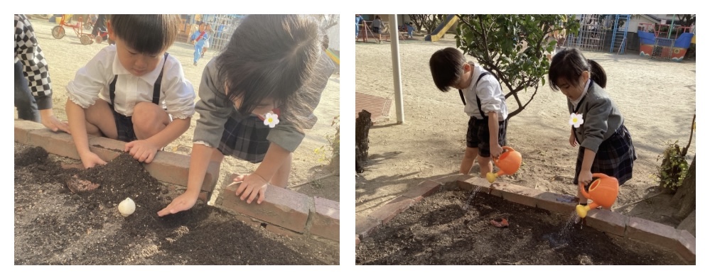 先日、園庭の花壇にお花を植えました!!